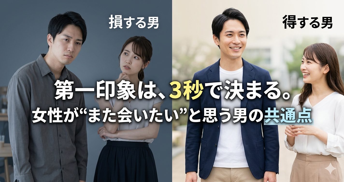 恋愛がうまくいかない男性ほど、会話術ばかり磨こうとしがちです。ですが、その前に大切なのは、最初の3秒で損をしないこと。せっかく中身に魅力があっても、第一印象で壁を作ってしまえば、その先を知ってもらえません。
